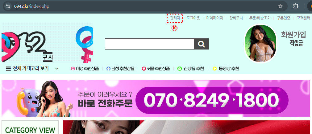 코밀리언 가입신청이 완료되고, 제휴몰 관리자의 '승인'문자를 받으신 후에 다시 로그인을 하시면 최상단에 관리자 메뉴가 표시됩니다.